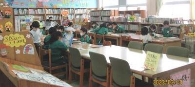 1年生は、春の装いになった図書室で、読書を楽しんでいました。