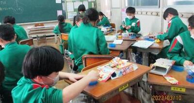 3年生は理科。「じしゃくと明かり」のセットでおもちゃづくりです。