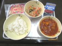 献立は、みんな大好きカレーライス。お祝いデザートもつきました。