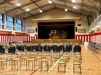 6年生が下校した後、5年生と職員で明日の会場準備をしました。