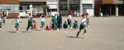 バトンパスを上手にしながら、校庭を力いっぱい走りぬく姿に