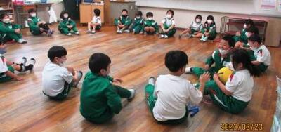 ボールを持っていたら鬼。キャーキャー言いながらボールを回します。