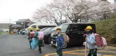 子どもたちは、桜咲く下校路を笑顔で下校しました。