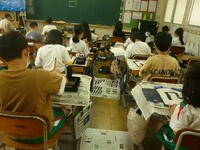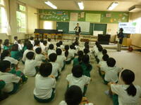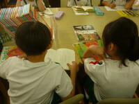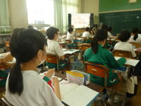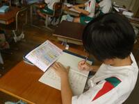 1年生は、各学級でボランティアの方の絵本の読み聞かせに聞き入っていました。2年生は、「おたのしみ会」の企画について話し合っていました。みんなが楽しめて、自分も楽しいことを考えるそうです。3年生は、ポートボールの試合で盛り上がっていました。4年生は、学校の畑で育てているへちまの生長を観察していました。5年生は、「アイネ・クライネ・ナハトムジーク」を鑑賞して、リズム打ちで2つのパートを合わせていました。6年生は、「私の1冊」を紹介できるよう、テーマに合った本を選んであらすじを書き、おすすめポイントをまとめていました。
