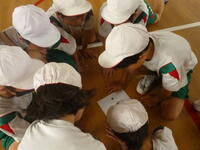 体育大会に向けて、各色の応援リーダーが顔合わせをしました。自己紹介の後、応援のやり方について相談していました。大きな声で指示を出したり、みんなの気持ちを1つにできるような応援を考えたり、重要な役割を担うリーダーたち。自分から「やりたい」と立候補して出てきてくれました。リーダーとしての挑戦を通して、体育大会の成功を支えます。