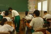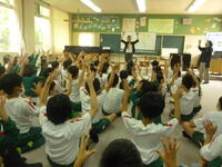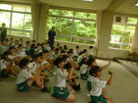 1年生は、算数で「しき」を書く練習をしていました。なんだかかっこいいと得意そうです。2年生は、リレーで接戦を繰り広げ、体育館中に響き渡る大歓声で盛り上がっていました。3年生は、外国語活動の時間に、英語で「すきな色」の発表をしていました。4年生は、垂直や平行の書き方をペアで確認していました。5年生は、書写で「ふるさと」と清書していました。音楽の時間には、いろいろな楽器を使って合奏をしていました。6年生は、日光にあたるとでんぷんができるか、対照実験をした葉っぱで確かめていました。外は34℃まで気温が上がり、スーパー昼休みの外遊びはあきらめましたが、教室は冷房が入って快適です。暑い中でも、元気いっぱいに過ごした子どもたちです。