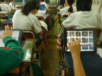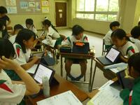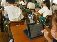 1年生は、来年度入学してくる1年生にプレゼントする朝顔の種を入れる封筒を作っていました。なんだかとってもうれしそうです。2年生は、2パターンの式を考えていました。真剣に考え込む姿が、さすが2年生です。3年生は、回旋リレーの練習をしていました。まだまだうまくいきませんが、みんなで意見を出し合って工夫しています。4年生は、書写で『左右』と書いていました。正しい筆順で書くときれいに整うことに気がついたようです。5年生は、『夢の世界を』を歌う様子を自分で録画していました。自分で自分を撮影するのはちょっと照れますが、自分が歌う姿をその場で確認できるのもタブレットの効果ですね。6年生は、社会のまとめでクイズ大会をしていました。すぐに結果が集計されて、得点率が分かります。ひんやりとした朝の空気に秋の訪れが感じられる、連休明けスタートの1日となりました。