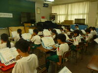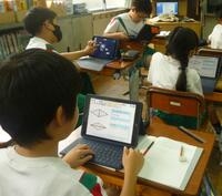 1年生は、ボール投げゲームで、ボールがフープを通過した回数をクラス対抗で競っていました。ねらったところにボールが飛ぶように、考えながら投げていました。2年生は、ピアニカで『かっこう』を演奏していました。リズムがそろってとてもきれいです。3年生は、外国語活動にもずいぶん慣れてきて、英語を使って活動しています。4年生は、ポートボールがとても上手になって、試合も白熱しています。5年生は、音楽の研究授業に張り切って取り組んでいました。タブレットを使って、イメージに合った作曲に挑戦する授業です。6年生は、理科の授業で、生き物どうしのかかわりについて、写真から読み取れることを話し合っていました。学年体育では、Tボールのリーグ戦で盛り上がっていました。1点差で負け、涙を流してくやしがる様子もあり、次の試合に向けて作戦会議をしているチームもありました。夏休み前のコンテストが近づいてきて、ちょっとしたすきま時間に自主的に勉強する姿も見られます。心待ちにしているスーパー昼休みもあって、学習に遊びに充実した水曜日です。