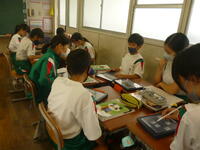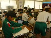 1年生は、タブレットを使って計算問題を解いていました。コンテストに向けて相談しながら学習を進めている2年生、下校前にはいす取りゲームを楽しんで、メリハリをつけています。3年生は、紙粘土で制作中の作品を仕上げていました。水泳学習の後の授業も、がんばって取り組めています。4年生は、算数の問題に熱心に挑戦し、学級の時間にはみんなでじゃんけんゲームで大盛り上がりしていました。5年生は、ALTの先生と考える外国語の授業が楽しそうです。6年生は、トートバックの制作が順調に進んでいます。国語の時間には、スマホのメリットとデメリットについて調べて、自分の考えをタブレットでまとめていました。どの学年もよくがんばった木曜日です。