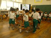 今年度1回目のたてわりタイムがありました。剣神社や秋葉山の散策を計画していたグループもありましたが、厳しい暑さのため、室内での活動に切り替えましたが、どの班もスムーズに活動できていました。6年生が1年生をお迎えに行き、「フルーツバスケット」「爆弾ゲーム」「ビンゴ」「クイズわたしはだれでしょう」「はじめの一歩」「絵しりとり」「紙飛行機とばし」「似顔絵リレー」など、6年生のリーダーが中心になって考えた活動を、みんなで楽しんでいました。