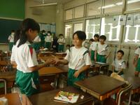 1年生は、初めてのけんばんハーモニカに挑戦していました。マウスピースに息を吹き込んでけんばんを押さえると、いろいろな音が響きます。2年生は、作文を書いたりデジタル教科書を使って算数の問題を解いたり、1学期前半の復習をがんばっています。3年生は、「わたしの町のおすすめを紹介します」というテーマで、敦賀の観光新聞を作っていました。地元のおいしいお店やさんから、気比神宮や敦賀祭り、松原海岸など、敦賀が誇る観光名所や伝統文化をよく知っています。4年生は、ポートボールの学習が終わり、今日はマット運動をしていました。背支持倒立が足先までぴんと伸びてばっちり決まっています。5年生は、外国語の時間に、自分のことについて英語で伝え合っていました。6年生は、栄養教諭の先生と、栄養バランスのよい「おにぎり朝ごはん」を考えていました。若狭牛を使ったライスバーガーや福井サーモンを使った鮭おにぎりなど、自分で考えたメニューを紹介しあっていました。栄養バランスを考えて朝ごはんを作ってくれると、お家の人も大助かりです。夏休みにぜひ挑戦してみてください!