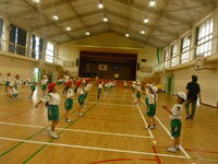 1年生は、表現運動の隊形作りをしていました。どんな表現になるか楽しみです。2年生は、算数の解き方について相談しながら考えていました。3年生は、外国語活動で「What food do you like?」の活動で盛り上がっていました。4年生は、リコーダーのテストをしていました。旋律に合った吹き方を工夫して『陽気な船長』を演奏していました。56年生の体育大会リーダーが、スーパー昼休みの時間を使って応援を考えていました。1年生にも分かるようにどうやって伝えるか、相談したり実演したりしながらがんばっています。