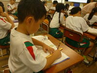 1年生は、「からだつくりうんどう」がとても上手になってきました。かめになったりうさぎになったり、いろいろな動きにすばやく反応して楽しんでいます。2年生は、粘土で自分の好きな動物を作っていました。みんなアイデアがいっぱいで、とても楽しそうな作品が出来上がりました。3年生は、風で動く車を作って実験していました。風を受けて7メートルも進んだ車がありました。4年生は、へちまの観察をしていました。苗がすくすくと大きくなるよう、葉についた小さな虫をとって、大切に育てています。5年生は、音楽の授業で合奏の練習をしていました。打楽器やピアノ、リコーダーなど、いろいろなパートが合わさって生まれるハーモニーが楽しみです。6年生は、修学旅行新聞を制作していました。金曜日のオープンスクールでたくさんのお客さんに見てもらえるように、最後の仕上げをがんばっています。