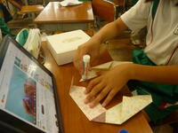 15日(土)の午前中、図書館ボランティア主催の「おりがみスクール」が開催されました。先着30名の募集でしたが、あっという間に定員を上回るたくさんの申し込みがあり、当日は図書館が満員になる大盛況ぶりでした。ボランティアの方の指導を受けながら、おりがみで「アイスクリーム」や「かに」「ねこ」などかわいらしい作品を作って、楽しいひとときを過ごしました。