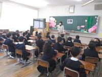1年生は、「校歌」の練習をしていました。歌詞をしっかり覚えて、大きな声で歌っていました。2年生は、秋葉山に行って撮影してきた写真を使って「お花見スケッチ」を描いていました。かわいらしいチョウや根をしっかり張って力強く咲くたたんぽぽなど、思い思いに春を感じるものがあるようです。3年生は、4回目の学年リレーをしていました。何度やっても大盛り上がりです。4年生は、スマホやネットゲームにひそむ危険なことついて、動画を見て考えていました。5年生は、理科の授業で「燃える」と「消える」について実験をして考えをまとめていました。分かったことはタブレットで共有しています。6年生は、図工の授業で「スクラッチアート」に挑戦していました。色とりどりの色彩が効果的に現れるように、黒く塗った画用紙を慎重に削っていました。