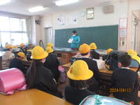 授業の後には地区別集会を行いました。集団登校の班ごとに、登校時の振り返りやいろいろな決まり事の確認をして、集団下校をしました。1年生がちゃんとついてきているか、歩くペースはちょうどいいか、各班の班長さんが何度も振り返って気遣いながら歩いていました。おかげさまで、1年生も安心して初めての登下校ができたようです。