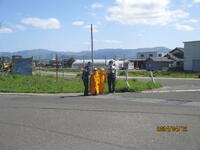敦賀警察署や敦賀市生活安全課、交通指導員さん、PTA生活安全委員の皆さんにお越しいただいて、1年生の交通安全教室を開催しました。初めにおまわりさんから交通安全についてのお話を聞いたあと、道路がいくつも交差する学校周辺を1人ずつ歩いて、安全を守るためにどんなことに気をつけるのか、どんな行動をすればいいのか、考えたり教えてもらったりしながら練習をしました。雨合羽を着ていると、視界が狭くなったり、音が聞こえづらくなったりすることも実際に体験しました。たくさんの車が行き交う中でしたが、実践的な交通安全の学習ができました。汗ばむ程の陽気の中、カッパまで着てよくがんばった1年生。学んだことを活かしながら、今日も安全に注意しながら下校しました。暑い中、一人一人の児童に丁寧に交通安全についてご指導くださった講師の皆様、本当にありがとうございました。
