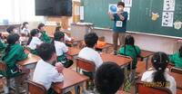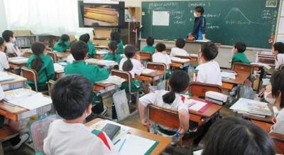 スクールカウンセラーによる「ストレスマネジメント」の授業を受ける5年生。