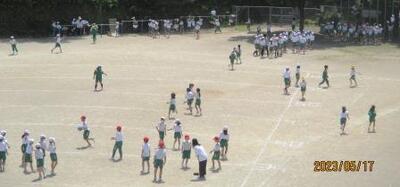 3年生は合同体育で、体育館をフル活用して、様々なリレーを楽しんでいました。