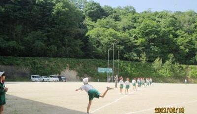 5年生は、体育で「ボール投げ」の測定をしていました。