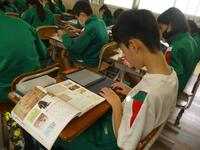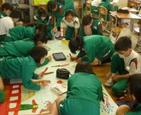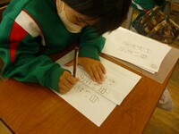 1年生は、体育の授業で「コーン」を回るリレーの練習をしていました。遠心力を抑えて最短距離で回れるように、考えながら走っていました。2年生は、「ひっさん」のやり方を勉強してノートに書いていました。「ひっさん」って、なんだかかっこいいです。3年生は、ALTの先生も入って「How many?」の練習をしていました。英語で20まで数えることができますよ。4年生は、あまりのあるわり算の筆算をしていました。筆算習いたての2年生に比べるとずいぶん難しくなっていますが、教え合いもしてばっちりのよう。「簡単ですよ」と涼しい顔です。5年生は、タブレットを使って書写の作品の振り返りをしていました。タブレットを使うと、自分が書きためてきた作品やみんなの作品を手軽に見ることができるようです。6年生は、修学旅行の見学先を相談していました。頭を寄せて、真剣に話し合っていました。