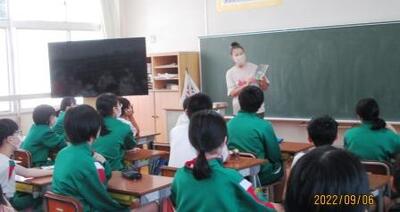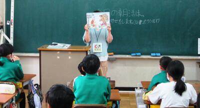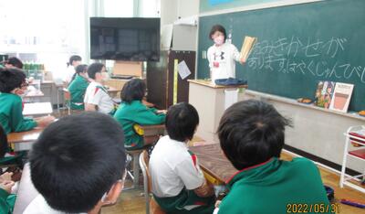 朝活動の時間に、図書ボランティアさんの読み聞かせがありました。