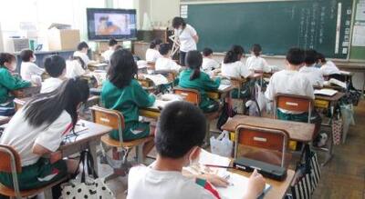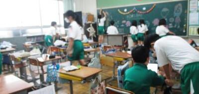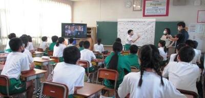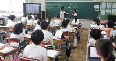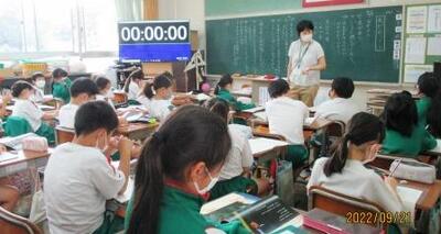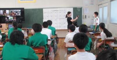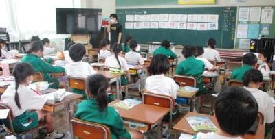 4年の教室では、タブレットに映し出された表で、体育大会の