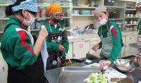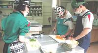 班で協力・分担して「洗う⇒皮をむく⇒切る⇒炒める・焼く⇒盛り付ける」と、