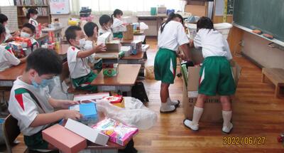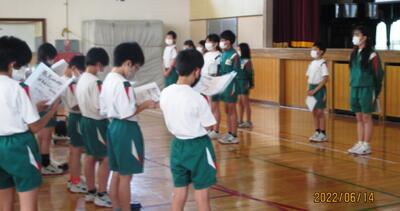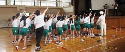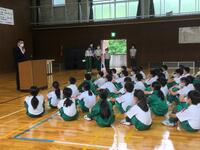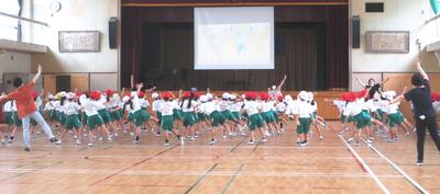 昼休みには、3年生の子どもたちが体育館にやってきました。