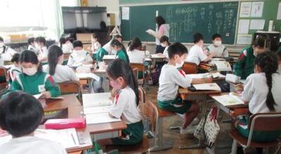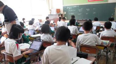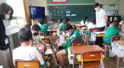 2年生は、算数の時間にタブレットで、ドリル学習に取り組んでいました。