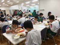 大広間にて、代表児童がお宿の方にご挨拶をした後、夕食です。