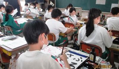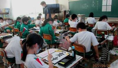 2年生の書写の様子です。競書会の課題に取り組んでいました。