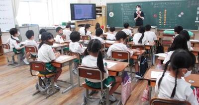 1年生は音楽で、鍵盤ハーモニカ「どれみとなかよくなろう」の学習。