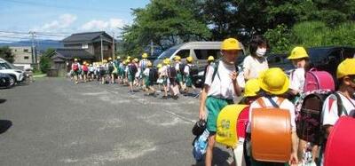 6月中旬の宿泊学習で野坂岳登山をする子どもたち、
