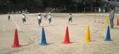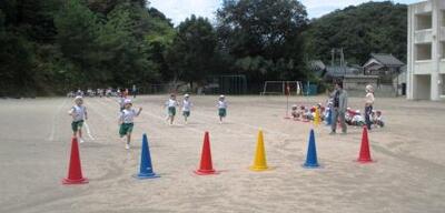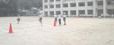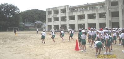9/8 3年生の朝スポーツ。いろいろなダッシュに、次々と挑戦。