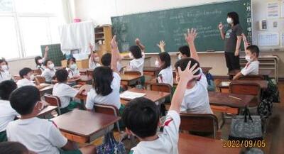 上は2年生、下は5年生の様子。真剣に聞き入ったり笑いが起こったり。
