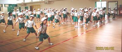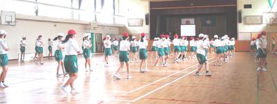9/9 6年生も体育大会に向けて表現種目の練習。軽快な曲で格好よく!