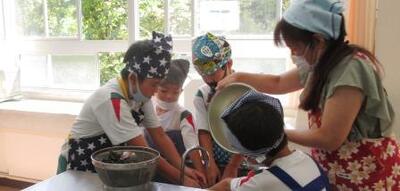 ケヤキ・なでしこの子どもたちは、「しそジュース」づくりに挑戦。