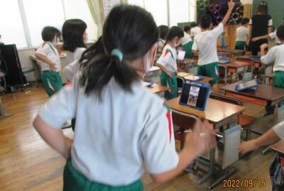 別の2年生の教室では、タブレットの動画を見ながらダンシング。