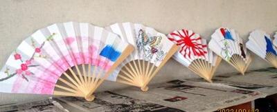 グループで、互いの作品を折って立たせて、見せ合いっこしていました。
