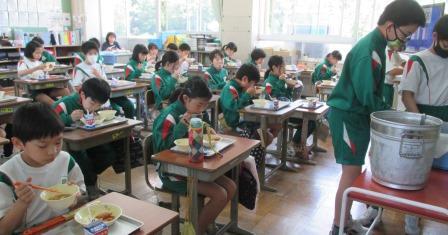 おいしい給食で満腹になった後は「縦割り班会議」。