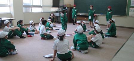 6年生のリーダーさんのもと、自己紹介や掃除の分担です。