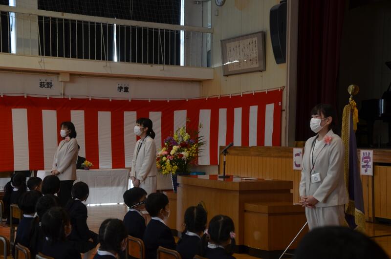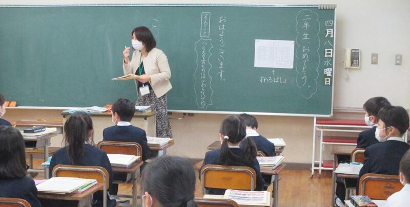 式後、教室に入って担任の先生のお話をしっかり聞きます。