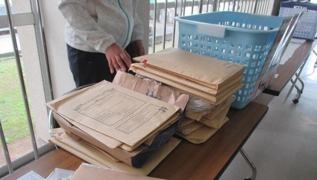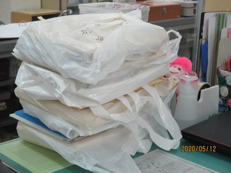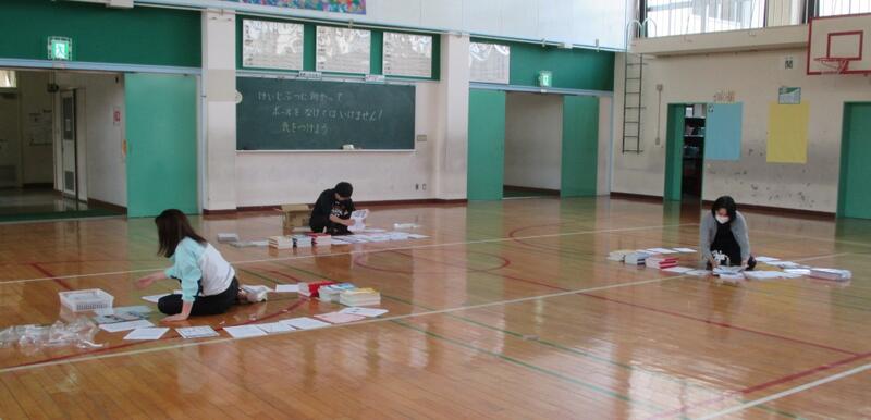 7日・8日にみなさんに届ける「おたより」や「課題」を袋詰め。