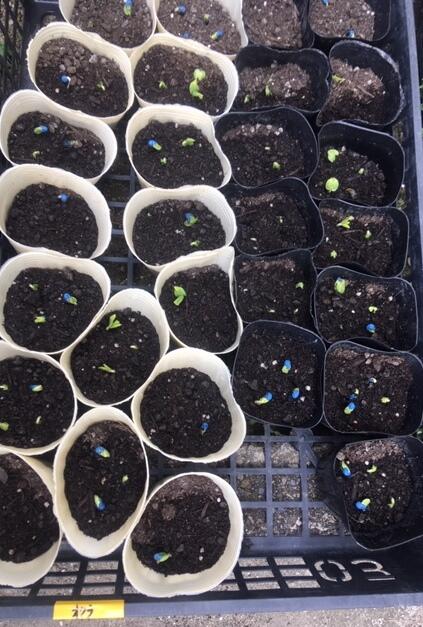 先日、3年生の先生が種まきしたオクラが芽を出していました。