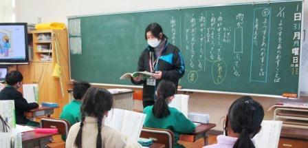 教科書の本文をまず先生が読み、次に子どもたちが読み…、