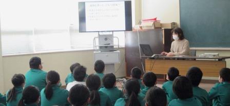 午後からは6年生が、粟野中学校の先生による「出前授業」を体験。
