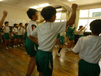 1年生は、表現運動の隊形作りをしていました。どんな表現になるか楽しみです。2年生は、算数の解き方について相談しながら考えていました。3年生は、外国語活動で「What food do you like?」の活動で盛り上がっていました。4年生は、リコーダーのテストをしていました。旋律に合った吹き方を工夫して『陽気な船長』を演奏していました。56年生の体育大会リーダーが、スーパー昼休みの時間を使って応援を考えていました。1年生にも分かるようにどうやって伝えるか、相談したり実演したりしながらがんばっています。