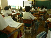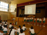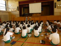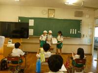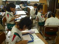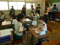 1年生は、体育大会でお披露目する表現運動の練習が始まっていました。音楽に合わせて自由に動き回ったりぴたりと止まったり、豊かに表現して楽しんでいます。2年生は、グループごとに話し合い活動をしていました。意見を出し合ったり聞きあったり協力して話し合いをしています。3年生は、わり算の答えの確かめ方について考えていました。4年生は、身体計測をした後、永久歯について学習していました。乳歯の下に永久歯が生える準備をしていることを知って、驚きの表情です。5年生は、算数の発展問題に挑戦していました。6年生は、外国語科で「Let’s see the world. ~世界の行きたい国について紹介し合おう~」の活動をしていました。夏休みモードからすっかり脱皮して、よくがんばった子どもたちです。