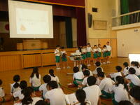 お祭りの楽しかった思い出を報告しあって、学校生活が再開しました。1年生は、栄養教諭の先生とお箸の使い方について学習していました。2年生は、『ペコリナイト』の曲に乗って、ノリノリでダンスをしていました。3年生は、あまりのあるわり算の学習で、デジタル教科書を使って問題を解いていました。4年生は、話し合って決めた学級レクで盛り上がっていました。5年生は、1週間後に近づいた「宿泊学習」の準備も大詰めを迎えています。6年生は、体育大会で発表予定のプログラムの練習に熱心に取り組んでいました。